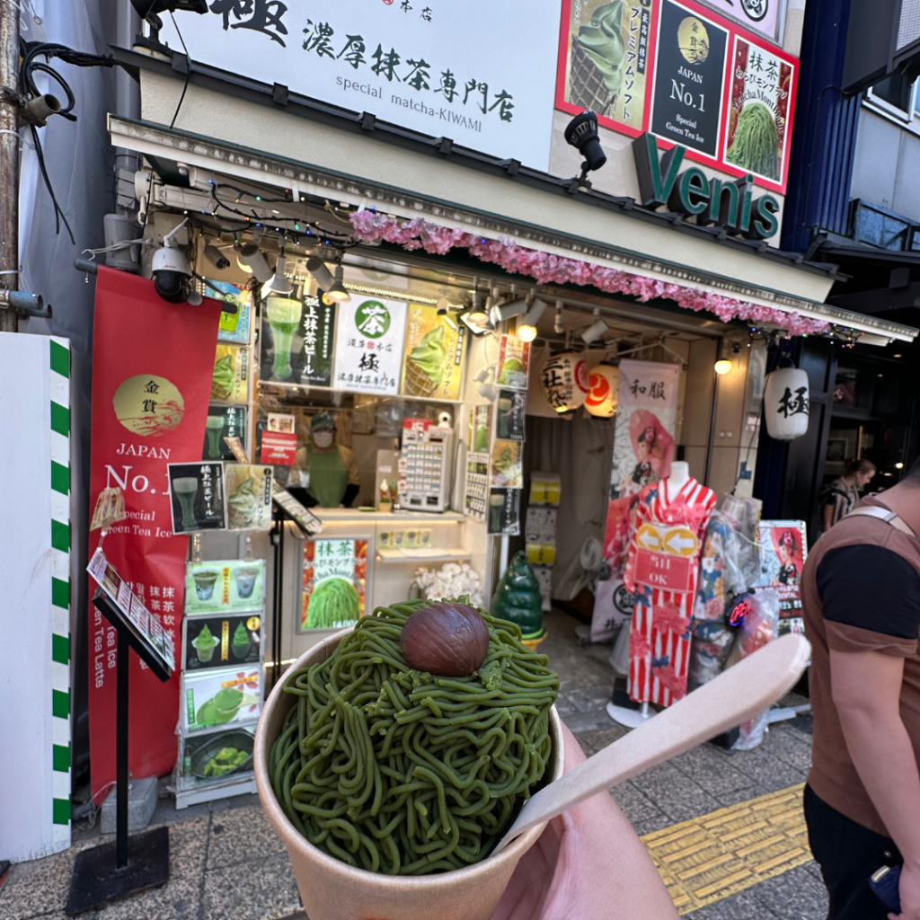 When visiting Japan, I highly recommend joining a class to truly immerse yourself in the culture. I took a matcha making class in Asakusa that I booked through Klook, and it ended up being one of my favorite experiences. The group was small, with fewer than ten people, and we sat on traditional mats while our teacher introduced us to the origins of matcha before guiding us through the steps of making it the traditional way. As a matcha lover, I found it both fun and meaningful, and I even had the chance to connect with people from all over the world.