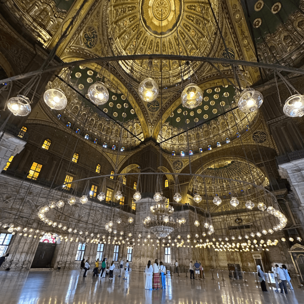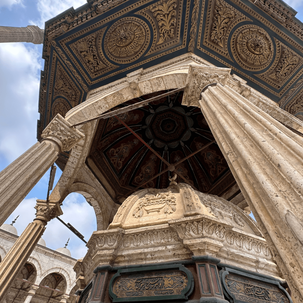 The most famous landmark inside the Citadel is the Mosque of Muhammad Ali, also known as the Alabaster Mosque. Its massive domes, tall minarets, and Ottoman-style design make it one of Cairo’s most recognizable sites. To enter, you’ll need to remove your shoes, or you can pay a small fee (around 5 EGP) for a pair of disposable shoe covers if you prefer to keep them on. Inside, the mosque feels truly majestic, with grand chandeliers hanging above and richly decorated details.
