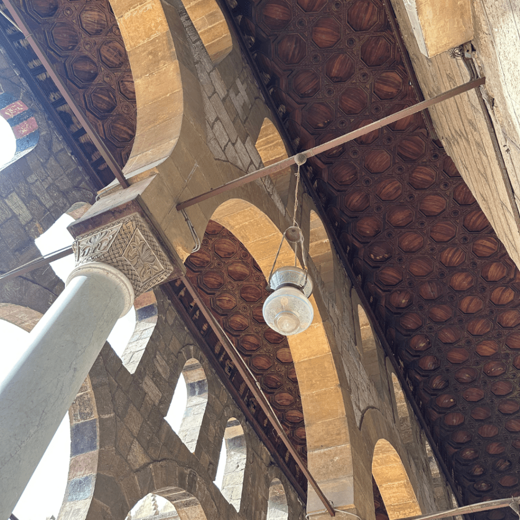 When I visited this mosque, there were hardly any other tourists around, which made it a peaceful way to start the morning before the crowds arrived. Compared to the grander mosques inside the Citadel, Sultan Al-Nasir Mosque is smaller in size but still incredibly beautiful. Before entering, you’ll need to remove your shoes, as is customary in mosques. What stood out to me most was the beautifully carved wooden ceiling, designed in a geometric honeycomb pattern. It gives the space an elegant charm and highlights the artistry of Islamic architecture during the Mamluk period.