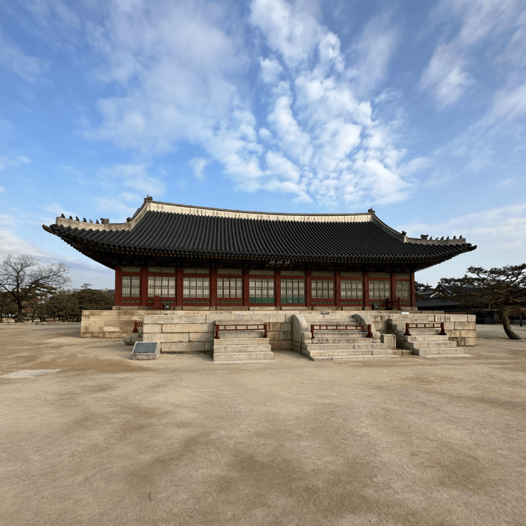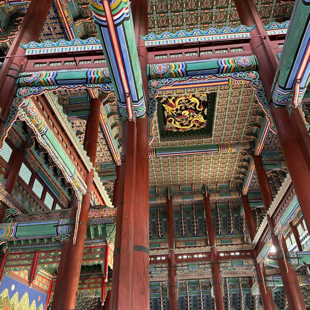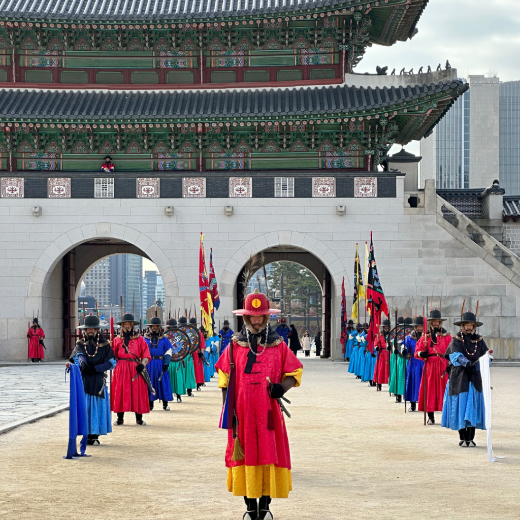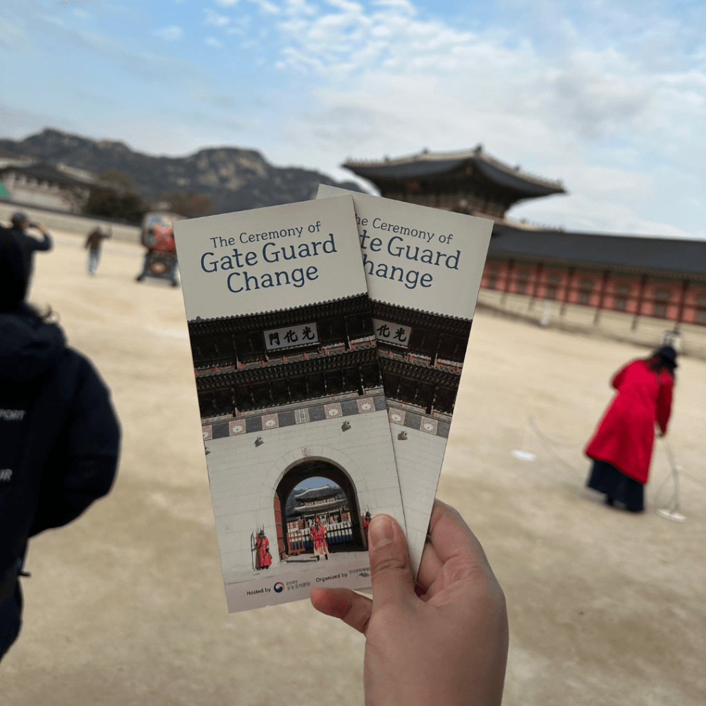 Our guide gave us a brief overview of the palace’s history before giving us time to explore on our own. Walking through the grounds at our own pace was a great chance to admire the architecture, especially with the mountains in the background (which made for amazing photos). My favorite part of the visit was watching the traditional Changing of the Guard ceremony, where guards dressed in colorful traditional uniforms reenact how the palace was protected during the Joseon Dynasty, accompanied by ceremonial music and precise movements that truly bring the history to life.