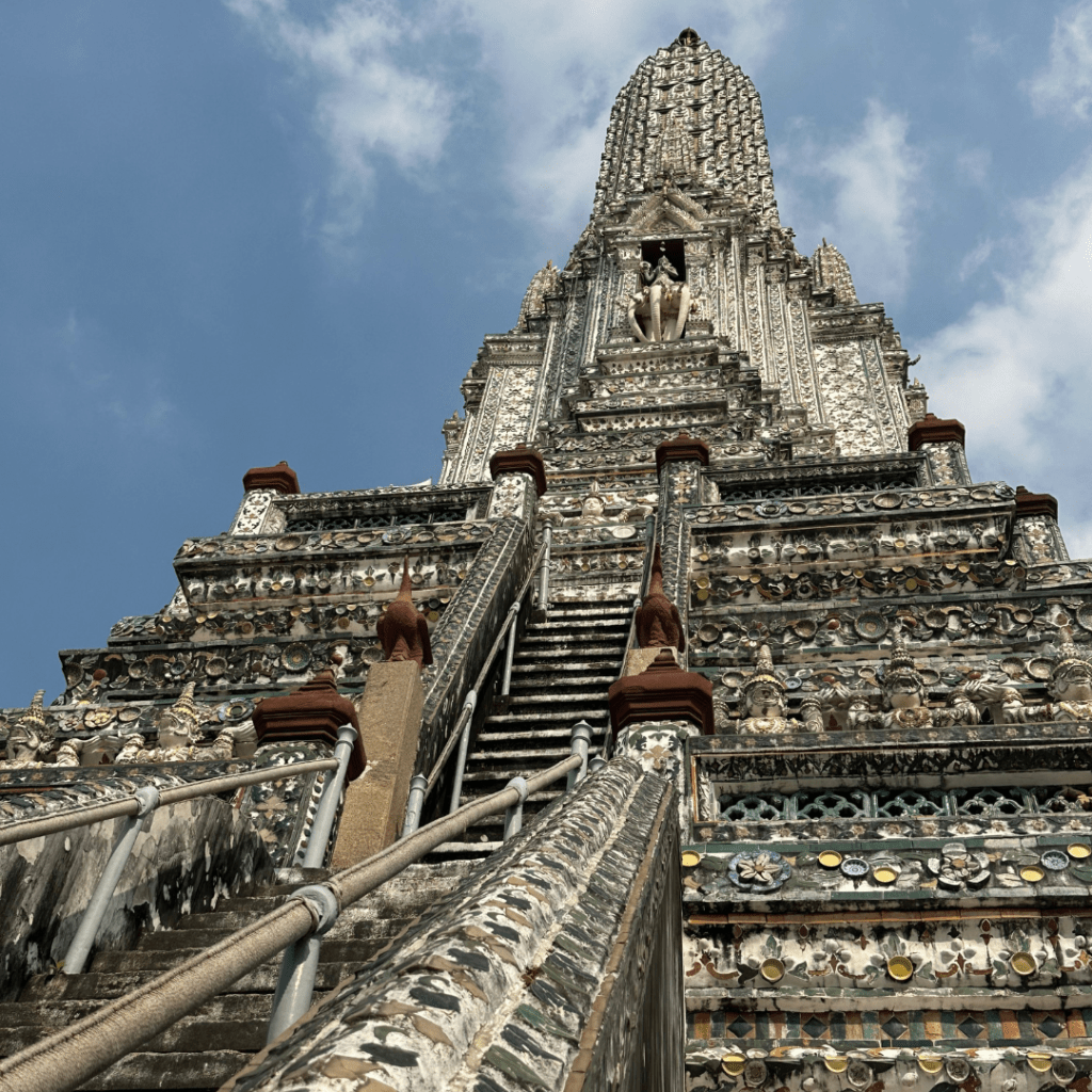 One of the most stunning temples along the Chao Phraya River to visit in Bangkok is Wat Arun. Seeing the architecture online was already beautiful, and being able to see it in person was even more impressive. This is also another site where you should ensure you are wearing modest attire.